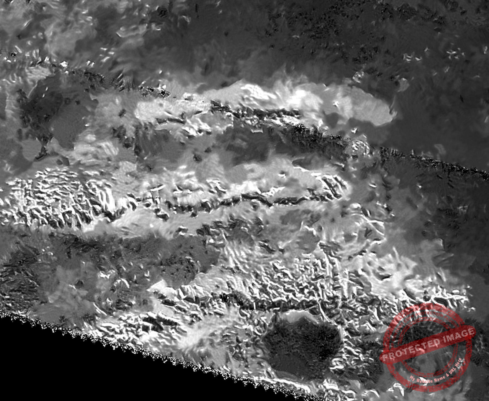 කෙසේ වෙතත්, ටයිටන්ගේ එම ඡායාරූපයේ, වඩාත්ම කැපී පෙනෙන දීප්තියේ සහ අන්ධකාරයේ වෙනස්කම් භූ විෂමතාවයට සම්බන්ධ නැහැ. කඳුවැටි සොයා ගැනීම සඳහා, ඔබ වයඹ සහ ගිනිකොන දෙසින් වඩාත් සියුම් ඉරි සොයා ගත යුතුයි. භූලක්ෂණ වල වෙනස්කම් පෙනවන එම ඉරි, ඇත්ත වශයෙන්ම දෘශ්යමාන වන්නේ මයික්රෝන 2 සහ 5 සාපේක්ෂ දිගු අධෝරක්ත තරංග ආයාමවලදී පමණක් වනවා. මෙම ඉතා කුඩා භූ විශමතා දැකීමට VIMS සමත් වීම සැබවින්ම පෘථිවි තාරකා විදඥ්ඥයන්ගේ ජයග්රහණයක් වනවා. ඒ වගේම ඒක පෘථිවි තාක්ශණයේද ජයග්රහණයක්.